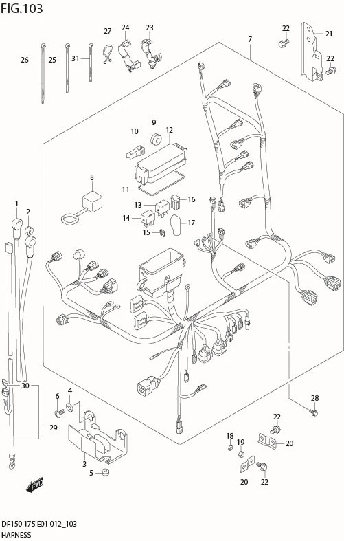 FIG 1 CYLINDER HEAD (DF150T E1)FIG 2 CYLINDER HEAD (DF150T E40)FIG 3 CYLINDER HEAD (DF150Z E1)FIG 4 CYLINDER HEAD (DF150Z E40)FIG 5 CYLINDER HEAD (DF175T E1)FIG 6 CYLINDER HEAD (DF175T E40)FIG 7 CYLINDER HEAD (DF175Z E1)FIG 8 CYLINDER HEAD (DF175Z E40)FIG 9 CYLINDER BLOCKFIG 10 CRANKSHAFTFIG 11 BALANCERFIG 12 TIMING CHAINFIG 13 CAMSHAFT (DF150T E1)FIG 14 CAMSHAFT (DF150T E40)FIG 15 CAMSHAFT (DF150Z E1)FIG 16 CAMSHAFT (DF150Z E40)FIG 17 CAMSHAFT (DF175T E1)FIG 18 CAMSHAFT (DF175T E40)FIG 19 CAMSHAFT (DF175Z E1)FIG 20 CAMSHAFT (DF175Z E40)FIG 21 INTAKE MANIFOLD / THROTTLE BODYFIG 22 SILENCER / RING GEAR COVER (DF150T E1)FIG 23 SILENCER / RING GEAR COVER (DF150T E40)FIG 24 SILENCER / RING GEAR COVER (DF150Z E1)FIG 25 SILENCER / RING GEAR COVER (DF150Z E40)FIG 26 SILENCER / RING GEAR COVER (DF175T E1)FIG 27 SILENCER / RING GEAR COVER (DF175T E40)FIG 28 SILENCER / RING GEAR COVER (DF175Z E1)FIG 29 SILENCER / RING GEAR COVER (DF175Z E40)FIG 30 EXHAUST COVERFIG 31 FUEL VAPOR SEPARATOR (DF150T E1)FIG 32 FUEL VAPOR SEPARATOR (DF150T E40)FIG 33 FUEL VAPOR SEPARATOR (DF150Z E1)FIG 34 FUEL VAPOR SEPARATOR (DF150Z E40)FIG 35 FUEL VAPOR SEPARATOR (DF175T E1)FIG 36 FUEL VAPOR SEPARATOR (DF175T E40)FIG 37 FUEL VAPOR SEPARATOR (DF175Z E1)FIG 38 FUEL VAPOR SEPARATOR (DF175Z E40)FIG 39 FUEL INJECTOR (DF150T E1)FIG 40 FUEL INJECTOR (DF150T E40)FIG 41 FUEL INJECTOR (DF150Z E1)FIG 42 FUEL INJECTOR (DF150Z E40)FIG 43 FUEL INJECTOR (DF175T E1)FIG 44 FUEL INJECTOR (DF175T E40)FIG 45 FUEL INJECTOR (DF175Z E1)FIG 46 FUEL INJECTOR (DF175Z E40)FIG 47 FUEL PUMP (DF150T E1)FIG 48 FUEL PUMP (DF150T E40)FIG 49 FUEL PUMP (DF150Z E1)FIG 50 FUEL PUMP (DF150Z E40)FIG 51 FUEL PUMP (DF175T E1)FIG 52 FUEL PUMP (DF175T E40)FIG 53 FUEL PUMP (DF175Z E1)FIG 54 FUEL PUMP (DF175Z E40)FIG 55 WATER PUMP (DF150T E1)FIG 56 WATER PUMP (DF150T E40)FIG 57 WATER PUMP (DF150Z E1)FIG 58 WATER PUMP (DF150Z E40)FIG 59 WATER PUMP (DF175T E1)FIG 60 WATER PUMP (DF175T E40)FIG 61 WATER PUMP (DF175Z E1)FIG 62 WATER PUMP (DF175Z E40)FIG 63 THERMOSTATFIG 64 THROTTLE RODFIG 65 OIL PUMPFIG 66 OIL FILTERFIG 67 OIL PANFIG 68 CLUTCH SHAFT (DF150T E1)FIG 69 CLUTCH SHAFT (DF150T E40)FIG 70 CLUTCH SHAFT (DF150Z E1)FIG 71 CLUTCH SHAFT (DF150Z E40)FIG 72 CLUTCH SHAFT (DF175T E1)FIG 73 CLUTCH SHAFT (DF175T E40)FIG 74 CLUTCH SHAFT (DF175Z E1)FIG 75 CLUTCH SHAFT (DF175Z E40)FIG 76 CLUTCH ROD (DF150T E1)FIG 77 CLUTCH ROD (DF150T E40)FIG 78 CLUTCH ROD (DF150Z E1)FIG 79 CLUTCH ROD (DF150Z E40)FIG 80 CLUTCH ROD (DF175T E1)FIG 81 CLUTCH ROD (DF175T E40)FIG 82 CLUTCH ROD (DF175Z E1)FIG 83 CLUTCH ROD (DF175Z E40)FIG 84 TRANSMISSION (DF150T E1)FIG 85 TRANSMISSION (DF150T E40)FIG 86 TRANSMISSION (DF150Z E1)FIG 87 TRANSMISSION (DF150Z E40)FIG 88 TRANSMISSION (DF175T E1)FIG 89 TRANSMISSION (DF175T E40)FIG 90 TRANSMISSION (DF175Z E1)FIG 91 TRANSMISSION (DF175Z E40)FIG 92 STARTING MOTORFIG 93 MAGNETO (DF150T E1)FIG 94 MAGNETO (DF150T E40)FIG 95 MAGNETO (DF150Z E1)FIG 96 MAGNETO (DF150Z E40)FIG 97 MAGNETO (DF175T E1)FIG 98 MAGNETO (DF175T E40)FIG 99 MAGNETO (DF175Z E1)FIG 100 MAGNETO (DF175Z E40)FIG 101 RECTIFIER / IGNITION COILFIG 102 SENSORFIG 103 HARNESS (DF150T E1)FIG 104 HARNESS (DF150T E40)FIG 105 HARNESS (DF150Z E1)FIG 106 HARNESS (DF150Z E40)FIG 107 HARNESS (DF175T E1)FIG 108 HARNESS (DF175T E40)FIG 109 HARNESS (DF175Z E1)FIG 110 HARNESS (DF175Z E40)FIG 111 PTT SWITCH / ENGINE CONTROL UNIT (DF150T E1)FIG 112 PTT SWITCH / ENGINE CONTROL UNIT (DF150T E40)FIG 113 PTT SWITCH / ENGINE CONTROL UNIT (DF150Z E1)FIG 114 PTT SWITCH / ENGINE CONTROL UNIT (DF150Z E40)FIG 115 PTT SWITCH / ENGINE CONTROL UNIT (DF175T E1)FIG 116 PTT SWITCH / ENGINE CONTROL UNIT (DF175T E40)FIG 117 PTT SWITCH / ENGINE CONTROL UNIT (DF175Z E1)FIG 118 PTT SWITCH / ENGINE CONTROL UNIT (DF175Z E40)FIG 119 CLAMP BRACKETFIG 120 SWIVEL BRACKET (DF150T E1)FIG 121 SWIVEL BRACKET (DF150T E40)FIG 122 SWIVEL BRACKET (DF150Z E1)FIG 123 SWIVEL BRACKET (DF150Z E40)FIG 124 SWIVEL BRACKET (DF175T E1)FIG 125 SWIVEL BRACKET (DF175T E40)FIG 126 SWIVEL BRACKET (DF175Z E1)FIG 127 SWIVEL BRACKET (DF175Z E40)FIG 128 TRIM CYLINDERFIG 129 PTT MOTORFIG 130 ENGINE HOLDERFIG 131 DRIVE SHAFT HOUSING (DF150T E1)FIG 132 DRIVE SHAFT HOUSING (DF150T E40)FIG 133 DRIVE SHAFT HOUSING (DF150Z E1)FIG 134 DRIVE SHAFT HOUSING (DF150Z E40)FIG 135 DRIVE SHAFT HOUSING (DF175T E1)FIG 136 DRIVE SHAFT HOUSING (DF175T E40)FIG 137 DRIVE SHAFT HOUSING (DF175Z E1)FIG 138 DRIVE SHAFT HOUSING (DF175Z E40)FIG 139 GEAR CASE (DF150T E1)FIG 140 GEAR CASE (DF150T E40)FIG 141 GEAR CASE (DF150Z E1)FIG 142 GEAR CASE (DF150Z E40)FIG 143 GEAR CASE (DF175T E1)FIG 144 GEAR CASE (DF175T E40)FIG 145 GEAR CASE (DF175Z E1)FIG 146 GEAR CASE (DF175Z E40)FIG 147 SIDE COVER (DF150T E1)FIG 148 SIDE COVER (DF150T E40)FIG 149 SIDE COVER (DF150Z E1)FIG 150 SIDE COVER (DF150Z E40)FIG 151 SIDE COVER (DF175T E1)FIG 152 SIDE COVER (DF175T E40)FIG 153 SIDE COVER (DF175Z E1)FIG 154 SIDE COVER (DF175Z E40)FIG 155 ENGINE COVER (DF150T E1)FIG 156 ENGINE COVER (DF150T E40)FIG 157 ENGINE COVER (DF150Z E1)FIG 158 ENGINE COVER (DF150Z E40)FIG 159 ENGINE COVER (DF175T E1)FIG 160 ENGINE COVER (DF175T E40)FIG 161 ENGINE COVER (DF175Z E1)FIG 162 ENGINE COVER (DF175Z E40)FIG 163 FUEL HOSE (DF150T E40)FIG 164 FUEL HOSE (DF150Z E1)FIG 165 FUEL HOSE (DF150Z E40)FIG 166 FUEL HOSE (DF175T E1)FIG 167 FUEL HOSE (DF175T E40)FIG 168 FUEL HOSE (DF175Z E1)FIG 169 FUEL HOSE (DF175Z E1)FIG 170 FUEL HOSE (DF175Z E40)FIG 171 DRAG LINKFIG 172 OPT:REMOTE CONTROLFIG 173 METER (DF150T E1)FIG 174 METER (DF150T E40)FIG 175 METER (DF150Z E1)FIG 176 METER (DF150Z E40)FIG 177 METER (DF175T E1)FIG 178 METER (DF175T E40)FIG 179 METER (DF175Z E1)FIG 180 METER (DF175Z E40)FIG 181 OPT:METER (1)FIG 182 OPT:METER (2)FIG 183 OPT:HARNESS (1) (DF150T E1)FIG 184 OPT:HARNESS (1) (DF150T E40)FIG 185 OPT:HARNESS (1) (DF150Z E1)FIG 186 OPT:HARNESS (1) (DF150Z E40)FIG 187 OPT:HARNESS (1) (DF175T E1)FIG 188 OPT:HARNESS (1) (DF175T E40)FIG 189 OPT:HARNESS (1) (DF175Z E1)FIG 190 OPT:HARNESS (1) (DF175Z E40)FIG 191 OPT:HARNESS (2)FIG 192 