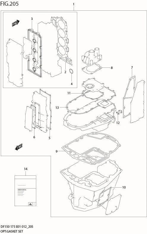 FIG 205 OPT:GASKET SET (DF175T E40)