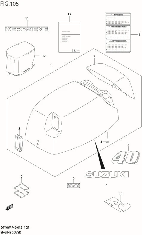 FIG 1 CYLINDER (DT40W P40)FIG 2 CYLINDER (DT40W P90)FIG 3 CYLINDER (DT40WR P40)FIG 4 CYLINDER (DT40WR P90)FIG 5 CYLINDER (DT40WK P40)FIG 6 CRANKSHAFT (DT40W P40)FIG 7 CRANKSHAFT (DT40W P90)FIG 8 CRANKSHAFT (DT40WR P40)FIG 9 CRANKSHAFT(DT40WR P90)FIG 10 CRANKSHAFT(DT40WK P40)FIG 11 INLET CASE (DT40W P40)FIG 12 INLET CASE (DT40W P90)FIG 13 INLET CASE (DT40WR P40)FIG 14 INLET CASE (DT40WR P90)FIG 15 INLET CASE (DT40WK P40)FIG 16 CARBURETOR (DT40W P40)FIG 17 CARBURETOR (DT40W P90)FIG 18 CARBURETOR (DT40WR P40)FIG 19 CARBURETOR (DT40WR P90)FIG 20 CARBURETOR (DT40WK P40)FIG 21 OIL SEAL HOUSING (DT40W P40)FIG 22 OIL SEAL HOUSING (DT40W P90)FIG 23 OIL SEAL HOUSING (DT40WR P40)FIG 24 OIL SEAL HOUSING (DT40WR P90)FIG 25 OIL SEAL HOUSING (DT40WK P40)FIG 26 EXHAUST TUBE (DT40W P40)FIG 27 EXHAUST TUBE (DT40W P90)FIG 28 EXHAUST TUBE (DT40WR P40)FIG 29 EXHAUST TUBE (DT40WR P90)FIG 30 EXHAUST TUBE (DT40WK P40)FIG 31 FUEL PUMP (DT40W P40)FIG 32 FUEL PUMP (DT40W P90)FIG 33 FUEL PUMP (DT40WR P40)FIG 34 FUEL PUMP (DT40WR P90)FIG 35 FUEL PUMP (DT40WK P40)FIG 36 WATER PUMP (DT40W P40)FIG 37 WATER PUMP (DT40W P90)FIG 38 WATER PUMP (DT40WR P40)FIG 39 WATER PUMP (DT40WR P90)FIG 40 WATER PUMP (DT40WK P40)FIG 41 RECOIL STARTERFIG 42 THROTTLE CONTROL (DT40W P40)FIG 43 THROTTLE CONTROL (DT40W P90)FIG 44 THROTTLE CONTROL (DT40WR P40)FIG 45 THROTTLE CONTROL (DT40WR P90)FIG 46 THROTTLE CONTROL (DT40WK P40)FIG 47 CLUTCH (DT40W P40)FIG 48 CLUTCH (DT40W P90)FIG 49 CLUTCH (DT40WR P40)FIG 50 CLUTCH (DT40WR P90)FIG 51 CLUTCH (DT40WK P40)FIG 52 TRANSMISSION (DT40W P40)FIG 53 TRANSMISSION (DT40W P90)FIG 54 TRANSMISSION (DT40WR P40)FIG 55 TRANSMISSION (DT40WR P90)FIG 56 TRANSMISSION (DT40WK P40)FIG 57 STARTING MOTOR (DT40W P40)FIG 58 STARTING MOTOR (DT40WR P40)FIG 59 STARTING MOTOR (DT40WR P90)FIG 60 MAGNETO (DT40W P40)FIG 61 MAGNETO (DT40W P90)FIG 62 MAGNETO (DT40WR P40)FIG 63 MAGNETO (DT40WR P90)FIG 64 MAGNETO (DT40WK P40)FIG 65 IGNITION (DT40W P40)FIG 66 IGNITION (DT40W P90)FIG 67 IGNITION (DT40WR P40)FIG 68 IGNITION (DT40WR P90)FIG 69 IGNITION (DT40WK P40)FIG 70 ELECTRICAL (DT40W P40)FIG 71 ELECTRICAL (DT40W P90)FIG 72 ELECTRICAL (DT40WR P40)FIG 73 ELECTRICAL (DT40WR P90)FIG 74 ELECTRICAL (DT40WK P40)FIG 75 IGNITION SWITCH (DT40W P40)FIG 76 IGNITION SWITCH (DT40W P90)FIG 77 IGNITION SWITCH (DT40WR P40)FIG 78 IGNITION SWITCH (DT40WR P90)FIG 79 IGNITION SWITCH (DT40WK P40)FIG 80 CLAMP BRACKET (DT40W P40)FIG 81 CLAMP BRACKET (DT40W P90)FIG 82 CLAMP BRACKET (DT40WR P40)FIG 83 CLAMP BRACKET (DT40WR P90)FIG 84 CLAMP BRACKET (DT40WK P40)FIG 85 SWIVEL BRACKET (DT40W P40)FIG 86 SWIVEL BRACKET (DT40W P90)FIG 87 SWIVEL BRACKET (DT40WR P40)FIG 88 SWIVEL BRACKET (DT40WR P90)FIG 89 SWIVEL BRACKET (DT40WK P40)FIG 90 DRIVE SHAFT HOUSING (DT40W P40)FIG 91 DRIVE SHAFT HOUSING (DT40W P90)FIG 92 DRIVE SHAFT HOUSING (DT40WR P40)FIG 93 DRIVE SHAFT HOUSING (DT40WR P90)FIG 94 DRIVE SHAFT HOUSING (DT40WK P40)FIG 95 GEAR CASEFIG 96 LOWER COVER (DT40W P40)FIG 97 LOWER COVER (DT40W P90)FIG 98 LOWER COVER (DT40WR P40)FIG 99 LOWER COVER (DT40WR P90)FIG 100 LOWER COVER (DT40WK P40)FIG 101 ENGINE COVER (DT40W P40)FIG 102 ENGINE COVER (DT40W P90)FIG 103 ENGINE COVER (DT40WR P40)FIG 104 ENGINE COVER (DT40WR P90)FIG 105 ENGINE COVER (DT40WK P40)FIG 106 TILLER HANDLE (DT40W P40)FIG 107 TILLER HANDLE (DT40W P90)FIG 108 TILLER HANDLE (DT40WK P40)FIG 109 FUEL TANK (PLASTIC/25L) (DT40W P40)FIG 110 FUEL TANK (PLASTIC/25L) (DT40W P90)FIG 111 FUEL TANK (PLASTIC/25L) (DT40WR P40)FIG 112 FUEL TANK (PLASTIC/25L) (DT40WR P90)FIG 113 FUEL TANK (PLASTIC/25L) (DT40WK P40)FIG 114 FUEL TANK (PLASTIC/12L) (DT40WK P40)FIG 115 REMOCON CABLE HOLDER (DT40WR P40)FIG 116 REMOCON CABLE HOLDER (DT40WR P90)FIG 117 REMOTE CONTROL (DT40WR P40)FIG 118 REMOTE CONTROL (DT40WR P90)FIG 119 DRAG LING (DT40WR P40)FIG 120 DRAG LING (DT40WR P90)FIG 121 OPT : STARTING MOTOR (DT40W P40)FIG 122 OPT : STARTING MOTOR (DT40W P90)FIG 123 OPT : STARTING MOTOR (DT40WK P40)FIG 124 OPT : METER (DT40W P40)FIG 125 OPT : METER (DT40WR P40)FIG 126 OPT : METER (DT40WR P90)FIG 127 OPT : ELECTRICAL (MANUAL STARTER) (DT40W P40)FIG 128 OPT : ELECTRICAL (MANUAL STARTER) (DT40W P90)FIG 129 OPT : ELECTRICAL (MANUAL STARTER) (DT40WK P40)FIG 130 OPT : ELECTRICAL (ELECTRIC STARTER) (DT40W P40)FIG 131 OPT : ELECTRICAL (ELECTRIC STARTER) (DT40WR P40)FIG 132 OPT : ELECTRICAL (ELECTRIC STARTER) (DT40WR P90)FIG 133 OPT : TILLER HANDLE (DT40WR P40)FIG 134 OPT : TILLER HANDLE (DT40WR P90)FIG 135 OPT : REMOCON PARTS (DT40W P40)FIG 136 OPT : REMOCON PARTS (DT40W P90)FIG 137 OPT : REMOCON PARTS (DT40WR P40)FIG 138 OPT : REMOCON PARTS (DT40WR P90)FIG 139 OPT : REMOCON PARTS (DT40WK P40)