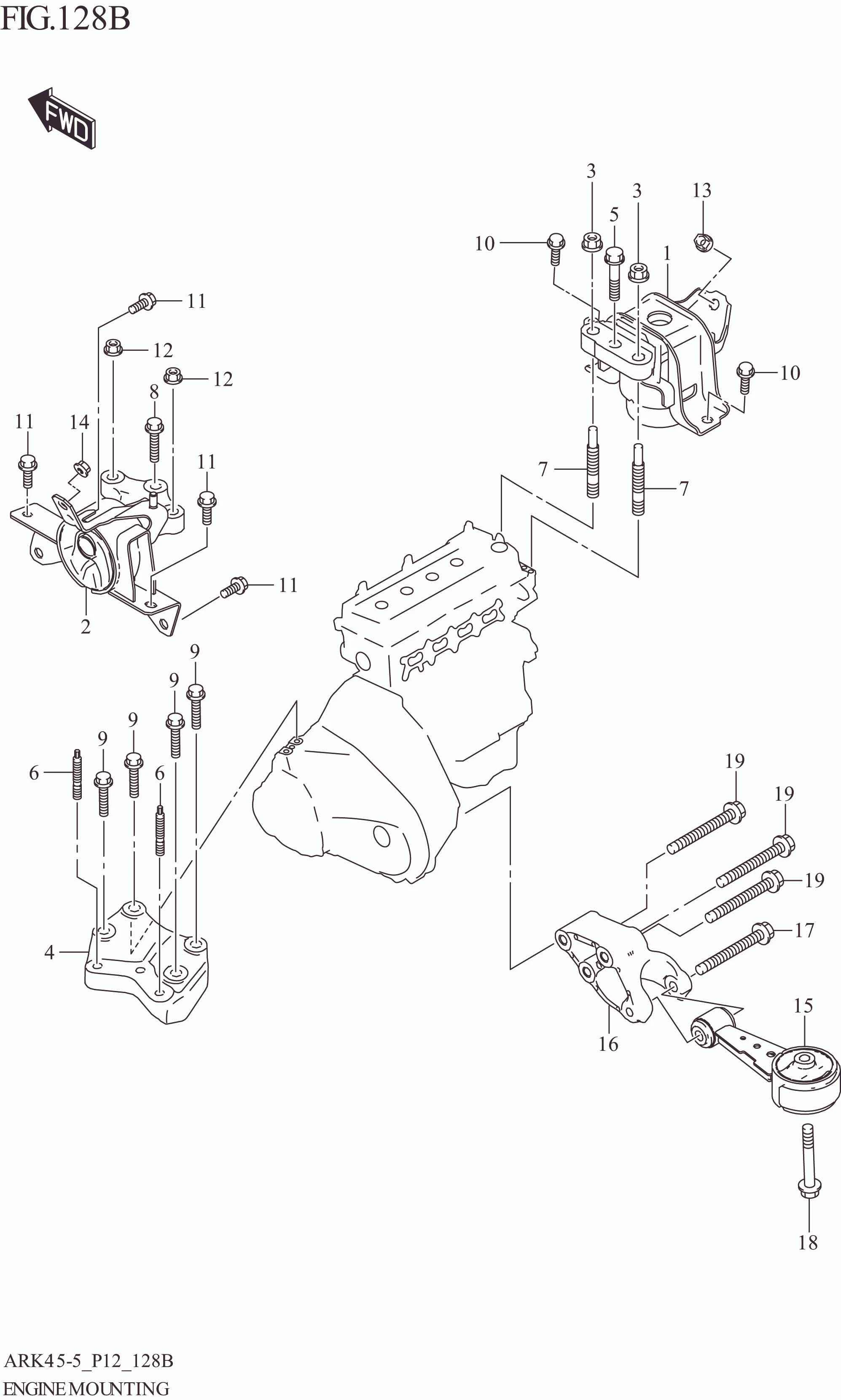 FIG. 128B ENGINE MOUNTING (4AT)